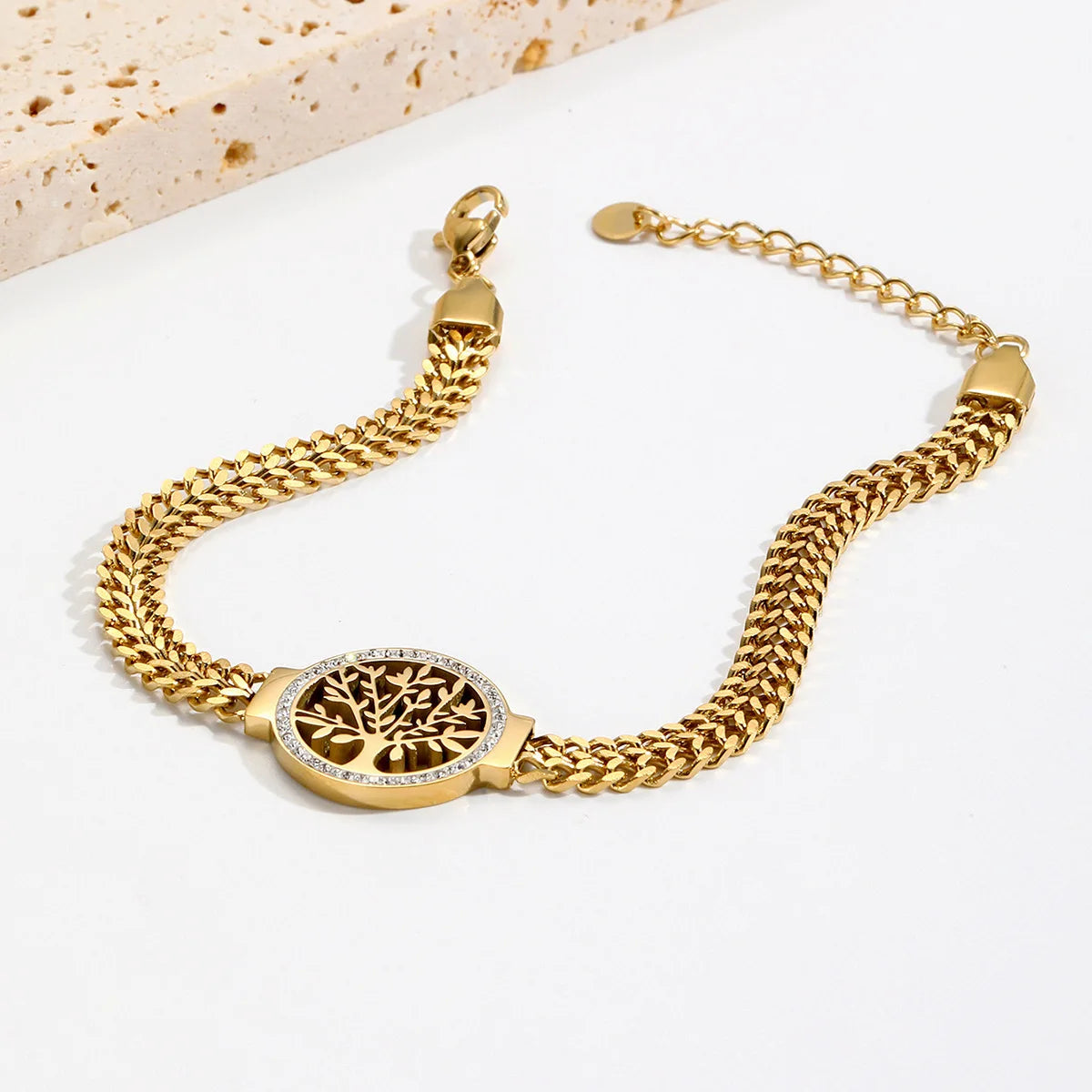 La chaîne fine et le pendentif arbre de vie créent un équilibre parfait entre subtilité et présence. Contrairement aux bracelets imposants qui peuvent gêner vos mouvements, celui-ci se fait oublier tout en restant visible - le compagnon idéal pour toutes vos journées.